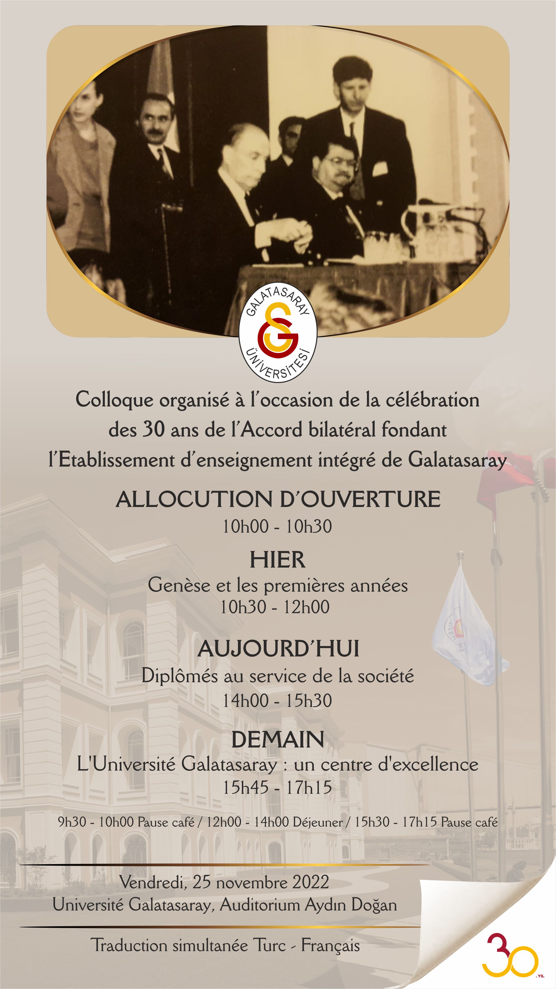 Colloque organisé à l’occasion de la célébration des 30 ans de l’Accord bilatéral fondant l’Etablissement d’enseignement intégré de Galatasaray