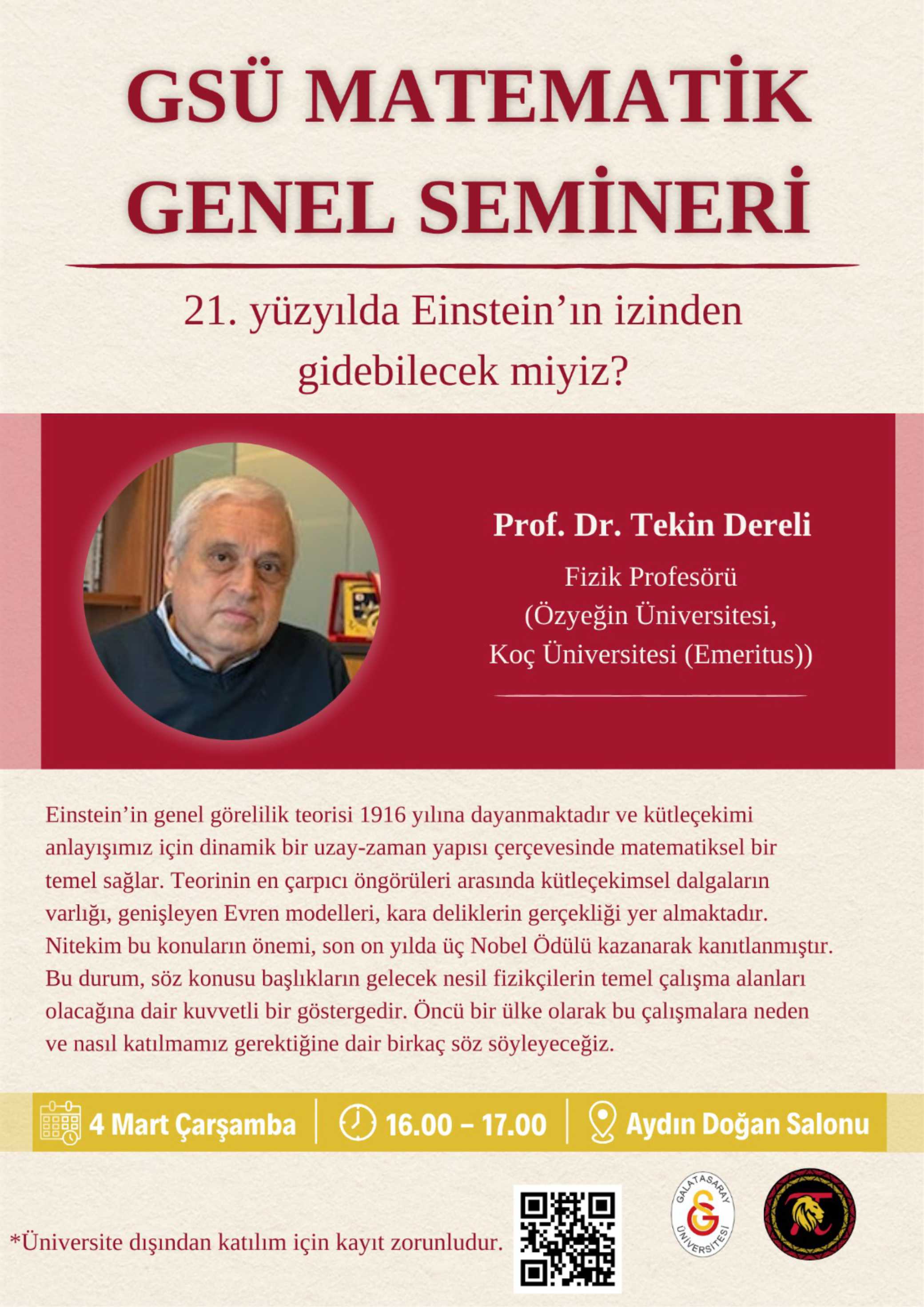 GSÜ Matematik Genel Semineri: 21. Yüzyılda Einstein'ın İzinden Gidebilecek Miyiz?