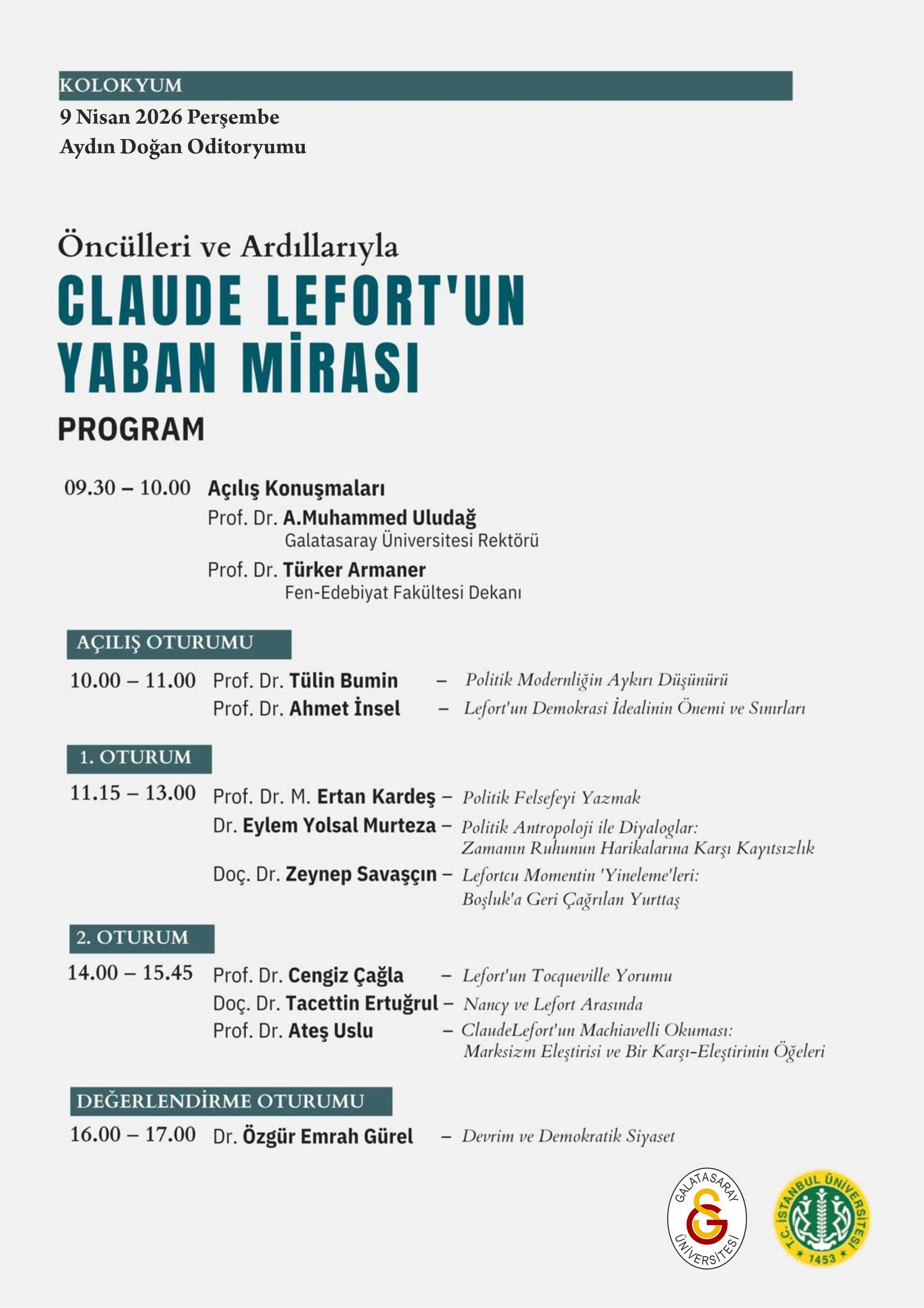 Başlangıç Tarihi ve Saati: 09.04.2026 09.30 Bitiş Tarihi ve Saati: 09.04.2026 17.00 Yer: Aydın Doğan Oditoryumu Takvime kaydet